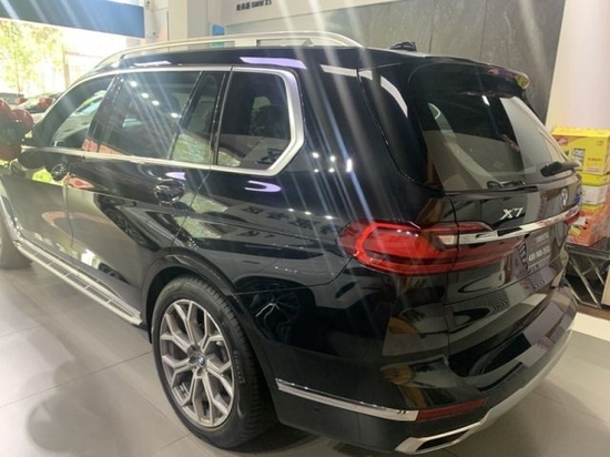 宝马X7配置6座,21寸Y型轻合金轮毂,铝制行李架,舒适型前排座椅电动可调,环境氛围灯,舒适进入,电吸门,宝马显示钥匙,后排遮阳帘,行李箱组件(电动升降行李箱隔物板),丝绒脚垫,三角警示牌,烟具组件,杯座,水晶档把,宝马个性化仪表盘,五区自动空调,香氛系统,驻车辅助增强版(含360环影),抬头显示,哈曼卡顿音响系统,手势控制,真皮运动方向盘,低压续行轮胎,运动变速箱,轮胎压力监测,铝制侧踏,玻璃水喷嘴不带加热,宝马个性化外部铝饰件,全景天窗(带星空顶),灭火器,高亮条纹木饰,六座(含第三排电动座椅),空气悬挂(可底盘升降),公里里程显示,LED雾灯,自动远光灯辅助,主动防护,驾驶辅助,特定国家无线电话,智能互联驾驶座舱,Alcantara车顶,宝马个性化迎宾踏板 ,海湾版本,炎热气候版本,大洋洲电台,安全带警告,外部显示车架号,日间行车灯,解码辅助功能,运输组件,年款代码