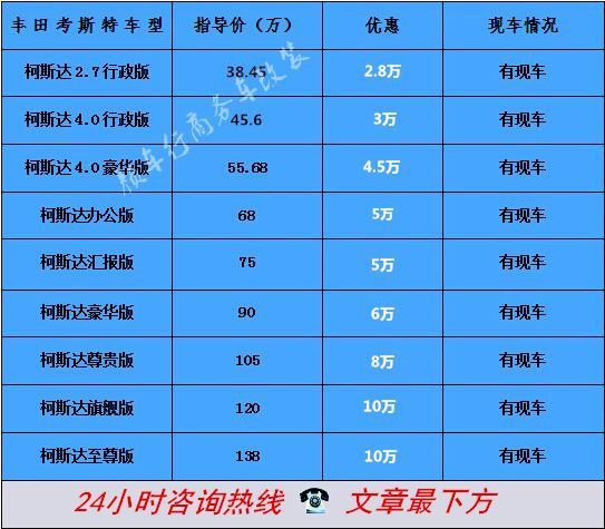 丰田考斯特4S店销售电话:130 1114 5577 (同微信)