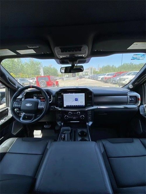 福特猛禽车内配备标准独特的皮革和布艺装饰的座椅,驾驶员侧的电动十向调节。这些座椅同时具备记忆功能。中央控制区搭配了触控式显示屏,其下方则是多媒体控制区及空调面板采用旋钮物理按键的组合。中控功能区域可分为三个小控制区,最上端为音响控制及导航控制。