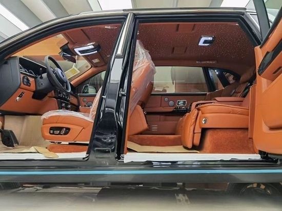 四座顶级幻影加长版而且侧面的腰线是手工画上去的,需要花费工匠3个小时时间!车轮上的劳斯莱斯双R车标是不随高亮铝合金轮毂而转动的,每辆幻影最少都要涂喷五层色漆和一层清漆,打磨均有人工完成,体现了劳斯莱斯对细节的高要求。