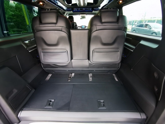 进口罗伦士天舟后排半躺:旋转二排座椅,与三排座椅腿拖无缝拼接,快速形成半躺姿态,身心放松,舒缓旅途疲惫