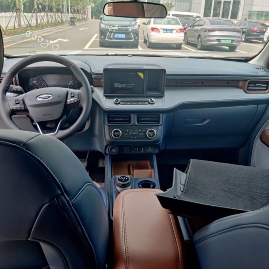 福特Maverick内饰设计与传统福特皮卡有着明显的不同,采用了更贴乘用车的设计理念,配有全液晶仪表盘、悬浮式大尺寸中控屏、旋钮式换挡结构等,并采用了黑色+棕色的双色主题。
