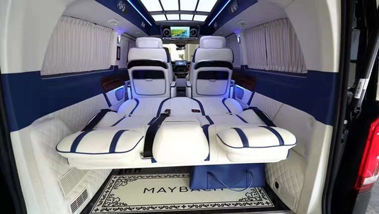 而奔驰威霆改装商务车还可以选择这些配置:车身内饰豪华包皮覆、车顶内饰豪华包覆、仪表台上半段包覆、仪表饰件、门板桃木处理、高级柚木地板、定制喇叭罩 、驾驶室玻璃钢中扶手箱 、豪华车顶灯(3色)、豪华窗柱装饰灯(冰蓝)、C柱包皮绣花、顶部两侧嵌银色条、车内两侧墙盒定制加工、全车窗柱包覆处理、侧墙版皮革包覆、折叠座椅中间吧台总成、后仓按摩座椅中扶手 桃木碳纤维、中扶手迈巴赫折叠小桌板、中扶手下方保险柜、折叠座椅中间吧台水晶酒瓶、电动布艺窗帘、 全车隔热隔音处理(整车)、 全车饰件涂装、后仓涡轮空调风口、定制挂衣架、后备箱储物柜、电动升降隔屏总成、铝合金踏板 LED灯(冰蓝)、后排座椅中间部位加装可拆式小桌板、顶部设计、夏普40寸电视、JBL车载音响、空气净化器、上开门美固压缩机制冷冰箱11L、 充逆变一体逆变器、五孔带USB插座、飞利浦迷你空气进化器、无线对讲机、7寸触控系统、正副驾仿夹模块、18寸定制轮毂、全车大包围等。