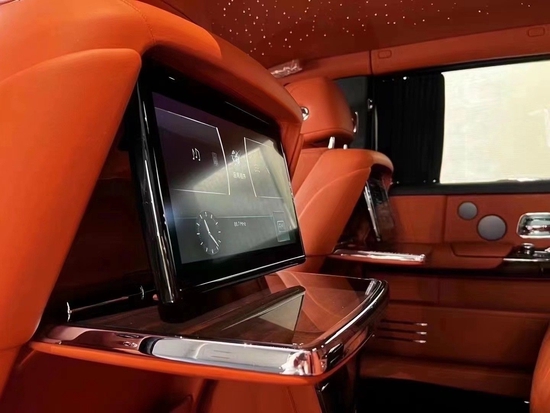 劳斯莱斯幻影是所谓的“后座车型”,因此,他们肯定不会让后座乘客失望,这里拥有两组独立的电动调整座椅,可由高雅的中控台控制,这部车也配备了新的后座娱乐系统,藏在木质饰板内的这组系统可藉由按下按钮来释放。电动折叠板和后排影院系统被巧妙的隐藏在前排座椅的椅背后,只需轻触按钮,便可以自如收放桌板和影院系统,带来完美的剧院体验。
