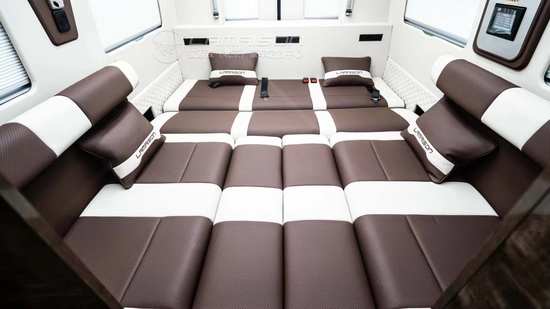新款进口3.0T四驱柴油版国六豪华真皮座椅可以前后、左右调节、加热、电动按摩,同时可以调节靠背、腿拖等。德国进口三折手动沙发床,座椅与大床之间切换自如,操作简单豪华大床的真皮触感舒适,营造良好的车内休息睡眠环境。作为商务用途来讲,配置当然必不可少!航空小桌板可供临时的办公,激发工作创意。