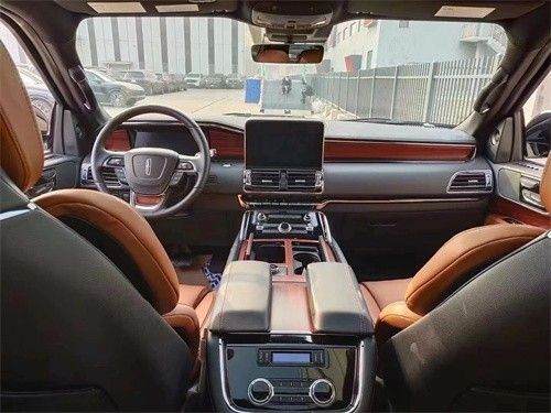 2022款新款林肯领航员的内饰非常奢华,多功能方向盘,中控台的造型与宽大的车身相呼应,新车全部真皮包裹座椅,内饰采用桃木搭配设计,高贵典雅,加高加大的车身除了增加内部空间外,还给人营造一种尊贵典雅的感觉,最新林肯领航员新车采用了2+2+3的座椅布局,第二排采用了两个独立座椅,座椅内侧均配有扶手,舒适度超强。