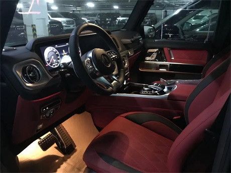 20款美规奔驰G (配置|询价)63 磨砂黑/红 5552# 标配+ 选配 独家内饰包(菱形格座椅 通风加热)加热方向盘,AMG性能方向盘napa皮革,备胎罩同车身颜色,黑色钢琴漆内饰,四季脚垫,前后红色卡钳,22寸熏黑轮毂。