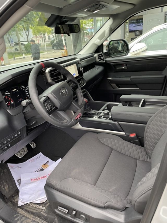 丰田坦途TRD集合了SUV的越野性能、卡车的载货能力、以及轿车的舒适性。丰田坦途五个小仪表给出了司机应该注意的技术参数,转速表、时速表、油量表、水温表、电池/机油表依次排列,数据显示清晰明了,中控台科技感十足,三辐方向盘延续了家族设计理念。