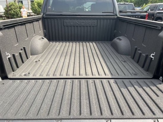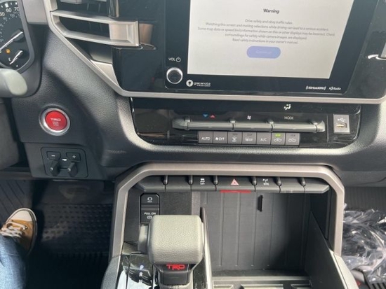 丰田坦途的内饰设计也采用了新设计风格,“硬”还是第一感受。无论是平直的线条还是灰白的用料配色,车内的风格都是非常偏向于越野,宽大的悬浮式液晶中控屏幕也是挺抢眼的,根据不同配置也将提供有8英寸以及14英寸的不同配置,就是这个感觉还是很像“大彩电”,只是放在这台车上会显得更协调一些,功能上也丰富了在线车联网以及CarPlay车机互联功能。
