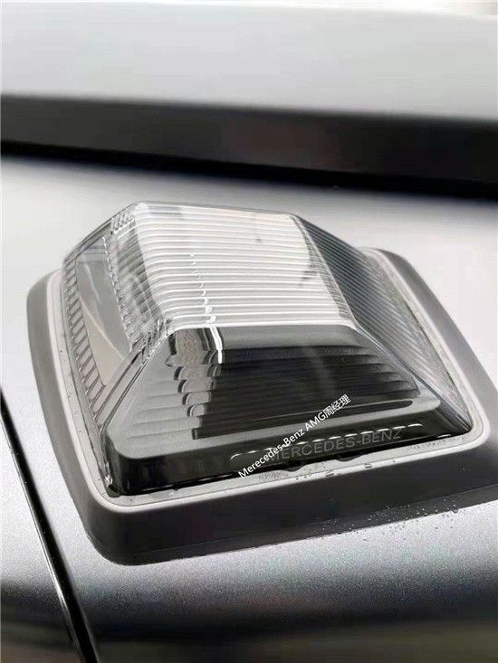22款奔驰AMG G63它硬朗的方盒子造型,没有多余的弧度、没有任何曲线,眼光所及满是平直锋利的线条,就连车顶上的导雨沟槽,也是沿着车顶周围一圈,分外焊接上去的金属槽,车门搭钮更是绝不虚心,硬挺挺地屹立在门缝之外,外凸的轮拱、造型如同 梯形的引擎盖。