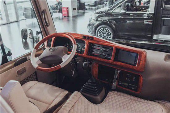 新款的丰田考斯特采用的是茶色玻璃,既能够增加车的美观性又可以起到很好的遮阳效果,一些豪华商务车的座椅没有过多的强调舒适性,往往只采用“真皮处理”,在客户体验上并不是很好。而丰田柯斯达超VIP豪华版配备了全亚洲最好的埃尔法 (配置|询价)航空座椅,包括正副驾驶员德国公牛打孔皮真皮座椅、欧洲精致缝制工艺,4张埃尔法豪华航空椅、1张4人沙发椅、1张双人豪华商务座椅,丰田考斯特12座豪华商务车舒适改装。