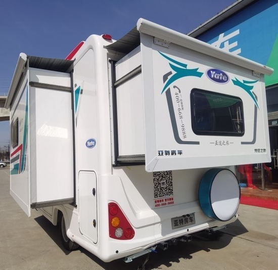 整车尺寸为5990*2545*3180(mm),左拓展和后拓展结构配有专属遮雨棚,左、后拓展打开后,雨棚会随着拓展一起滑出,车内空间可达10平米,整车荷载4~6人,符合国六(b)的排放标准,蓝牌C本即可。