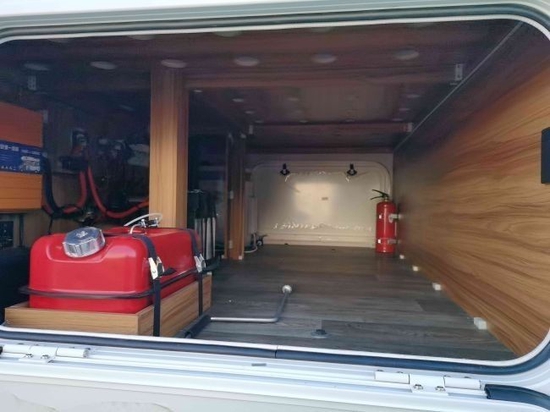 车辆搭配230安时锂电池,100w太阳能光伏板,3000w的充逆变一体机。顶部橱柜较大,满足了物品的存储需求。