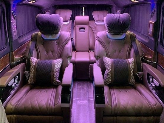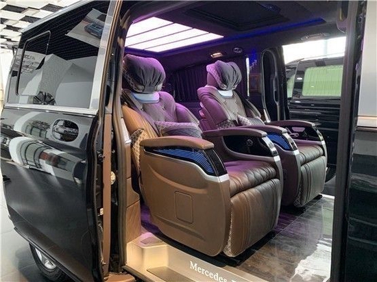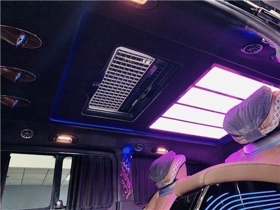 奔驰V260L改装VS680无隔断七座,内部装饰充满法国式的浪漫,九宫格灯珠镶嵌的椭圆形豪华顶棚造型设计气势磅礴,沿车身走向,两端与驾驶室隔屏和后门相衔接,形成古典对称的流线型图案。奔驰V250改装商务车全车新款电动精美布艺窗帘、控制车内电器的触摸屏操作,无不体现至尊豪华的商务形象,7座,家居、商用适合不过