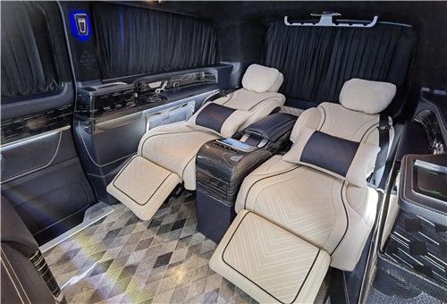 贵宾舱里的两个主座椅,两个主座椅采用航空头等舱级座椅,根据人体工学精心设计,全座椅同样用nappa真皮包覆,人体肌肤最舒适的触感,多种人性化功能集合于一体,例如电动按摩,通风加热。给乘坐者最舒心的乘坐体验。调配贴心规划的四向头枕、靠背垫,全方位疏解旅途劳顿。