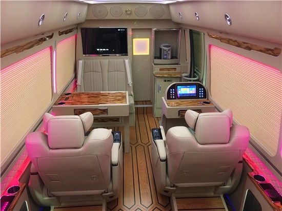 丰田考斯特改装商务车在内饰的设计上充分的展示了人们对与舒适的定义。内饰的座椅上我们有多种选择,每种选择都可以给我们带来不同的体验。真皮座椅、航空座椅、原装埃尔法 (配置|询价)座椅等,豪华的座椅搭配高档次的办公桌以及双人汇报席可以让我们随时随地办公。内饰隔断的设计更是为车内的空间提供了保障,隔断氛围高级升降隔断、固定隔断、电动隔断、电视隔断,每种隔断都有不同的作用,正是这些独一无二的设计成就了丰田考斯特改装商务车的独特舒适。