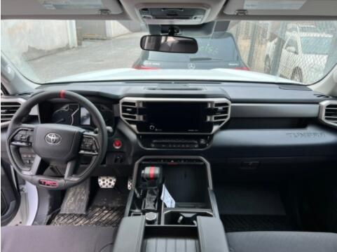 内饰上,2022款坦途TRD 越野版与此前亮相的Tacoma TRD 越野版保持风格上的一致。脚垫、头枕和控制台扶手以及旋钮上都点缀有“TRD”logo。依旧是宽大的中控台搭配各种大尺寸按键、旋钮的组合,配色方面采用深灰色与浅灰色搭配为主,可以很清楚的发现驾驶员一侧的色调以浅色调为主,作为一款皮卡,坦途内饰的用料和做工明显有过于“豪放”之嫌,中控台大面积的硬塑料材质说明它还是一款实用性至上的车型。