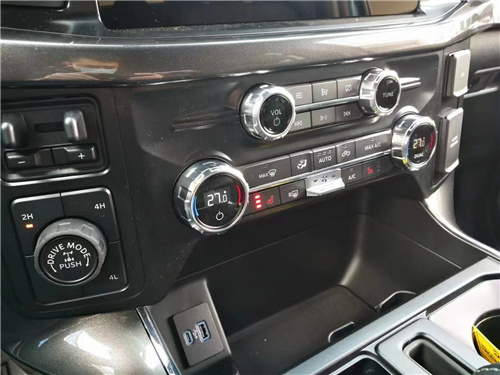 2022款福特F150Raptor皮卡中控台部分辅以银色饰板装饰六指针仪表盘的设计有些后工业时代的复古风格。采用带电冷热功能的可记忆式皮革座椅,头枕四向可调,搭配铝饰条和黑色钢琴烤漆内饰。可电动升降的后窗带隔板和电热除霜功能。进口福特猛禽F150皮卡真皮座椅包裹性很强。