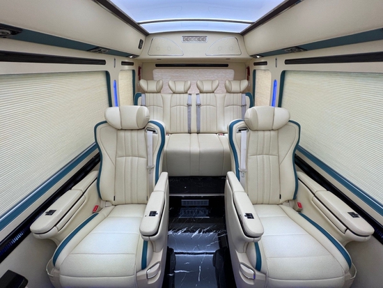 丰田考斯特12座改装商务车,除了座椅的改装以外,车内隔断的增加也是别有一番风味的,隔断的增加,将驾驶席和乘客席分开而设,同时我们可以在隔断上增加一些精美的装置,电子时钟,或者显示屏,方便又实用。隔断的效果最主要还是分离了司机和乘客,既能够给司机一个安静的驾驶环境,同样也为乘驾人员提供了更加静谧的乘车空间。