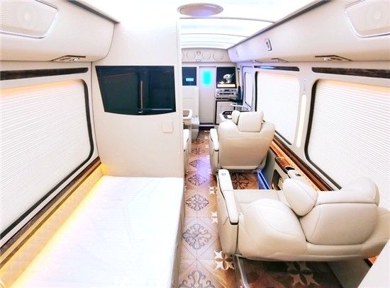 丰田考斯特政企接待版布局和加装配置,这个版型的中巴商务车算是最热销的车型,车内既能乘坐很多人,配置方面也可以加装一些办公常用的东西。车内还可以加装一个可旋转豪华独立首长座椅,豪华办公桌也是必不可少的,19寸吸顶电视搭配5.1声道系统最合适不过了。