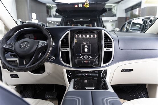 奔驰威霆商务改装版配置表:双侧电动门,全车大包围,铝合金行李架,LED 流水尾灯,倒车影像,多功能方向盘,原厂中排后座小桌板,前排手动升级电动座椅,12.1寸超大屏手机互联智能音响导航系统,全车高级桃木内饰件,后座11.6寸1080P高清智能娱乐系统,支持各种格式无损音乐播放。中排豪华航空座椅,后排多功能沙发床,吸顶电视,扶手冰箱,中控大屏,360无光夜视,全车内饰真皮软包造型,隔热隐私窗帘,意大利Alcantara翻毛顶,个性化行云流水顶灯 氛围灯。