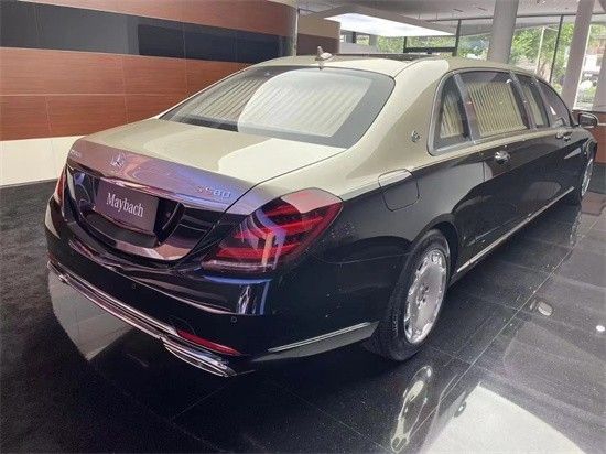奔驰迈巴赫S680 (配置|询价)普尔曼除了在车身中部采用加长式设计外,前脸的设计、轮毂造型等均与原车型迈巴赫S680相同。尾部的设计也延续了梅赛德斯-奔驰的设计风格。车身长度达到6499mm,轴距为4418mm,为乘客创造了极为奢侈的乘坐空间。大灯采用LED大灯并带有适应远光功能,在侧面的前后车门之间设置了安全灯,效果极佳。