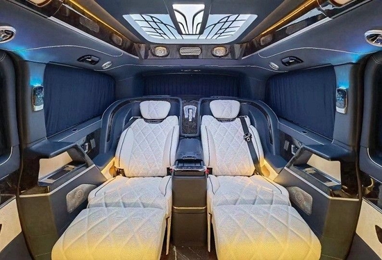 这款改装过的奔驰V级 (参数|图片)V260高端商务车采用的是高顶设计,车辆的大小取决于5400x2008x2080mm,与同类车型相比,它具有较大的空间优势。车身设计与众多跑车设计有着异曲同工的地方,加上一个18英寸的双5辐铝合金移动轮毂,让您无论是静态还是动态驾驶,奔驰V级V260的动力可以让你有一个完全不同的MPV的感觉。