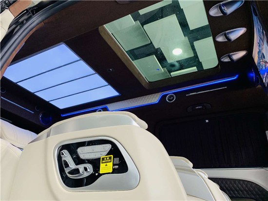 奔驰威霆一款贴合高端商务出行的豪华商务房车,基于此项定位,那么其后舱必定是绚丽铺陈的舒适化与娱乐功能性体现;显然这改款的奔驰威霆并没有让我们失望,萦绕车壁的精致龙纹娟秀,如生刻画着的磅礴贵气,奔驰威霆加上车顶的照明灯与周遭的七彩氛围装饰灯,更将车内氛围烘托到极致更多内饰图片参数配置。