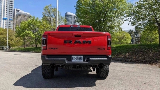 道奇RAM 1500 TRX整个的外观设计沉稳中透露出霸气,整体给人的气场非常的强烈。联系电话:13116175210华姐 (同号微信)整车黑白色的搭配,可谓是恰到好处,非常的酷炫霸气。前脸部分,新车装配了熏黑蜂窝状进气格栅,中间硕大的RAM内嵌其中,以此来表明新车的身份,而新车的机舱盖上方加入了高流量进气风口,相比福特F-150车型也更具硬派气息。