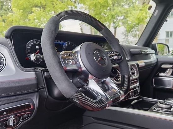 奔驰G (配置|询价)63配置AMG红色刹车卡钳 碳纤维AMG性能方向盘 磨砂黑备胎罩 22寸锻造AMG黑色轮毂 AMG碳纤维内饰 GT按钮