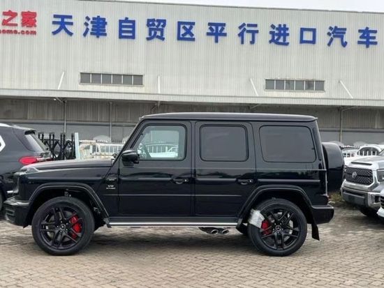 22款奔驰G63 (配置|询价)它硬朗的方盒子造型,没有多余的弧度、没有任何曲线,眼光所及满是直锋利的线条,就连车顶上的导雨沟槽,也是沿着车顶周围一圈,分外焊接上去的金属槽,车门搭钮更是绝不虚心,硬挺挺地屹立在门缝之外,外凸的轮拱、造型如同 梯形的引擎盖。