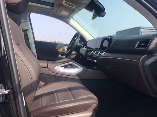 22款加版奔驰GLE450 内饰则延续了现款S级 (配置|询价)的造型,用的是贯穿式中控台双屏设计,12.3英寸的双液晶显示屏带来的科技感爆强,并且搭载了奔驰最新的MBUX人机交互系统,采用搪塑,皮革,实木,金属和碳纤维材质,三幅式底方向盘动感十足,头顶一个全景天窗,座椅用的是双色搭配的运动风格座椅,舒适性和包裹性也比较好。