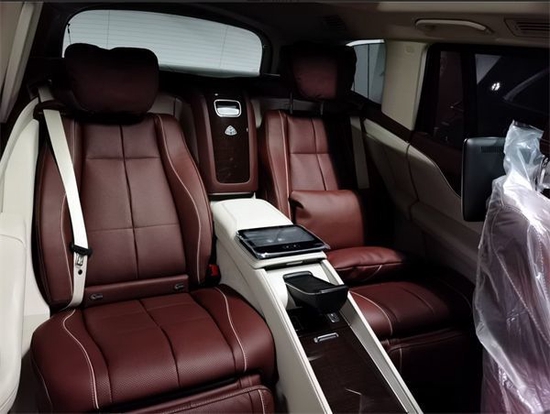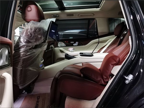 迈巴赫GLS600新车提供四座和五座两种布局,其中四座车型第二排独立座椅相比普通版GLS更加靠后,并且带有巨大的腿拖,其后排座椅最大倾斜角度大43.5度,后排腿部空间最大达1.34米。中央由冰箱、控制台、储物空间和手机无线充电台等进行贯穿,呈现出类似于迈巴赫S级一样的头等舱设计。
