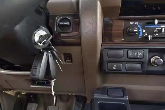 这辆酷路泽的车内部分,驾驶室精简明了,导航屏幕的安装使得它偏向于现代化汽车设计,内饰复古桃木面板很经典,圆形的空调出风口很直接,车内配置也有很多,当然这些配置都是为了越野服务的电子配置并不多,因为电子配置太多会影响它的可靠性。不过酷路泽LC79车内有灰色帆布包裹,车内还有大量的“Namib”标志,空调出风口可以直达手套箱,