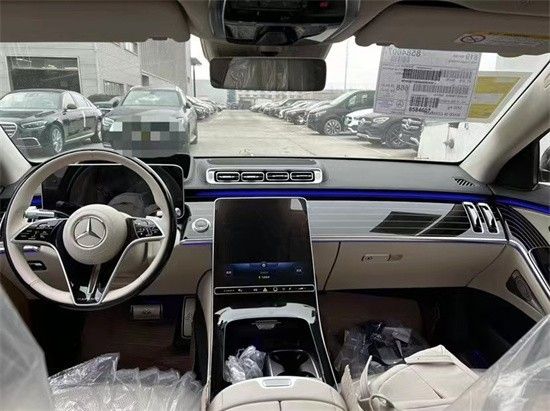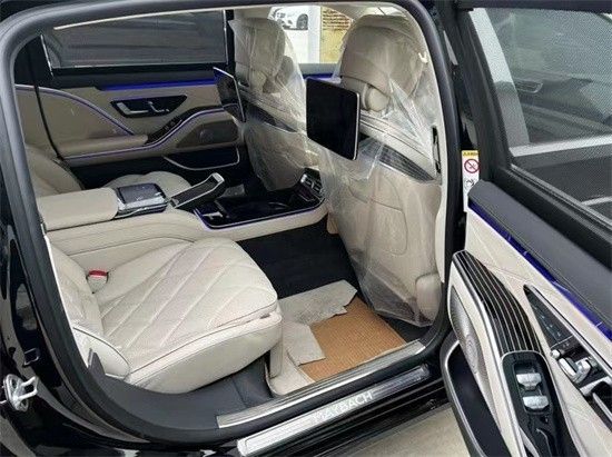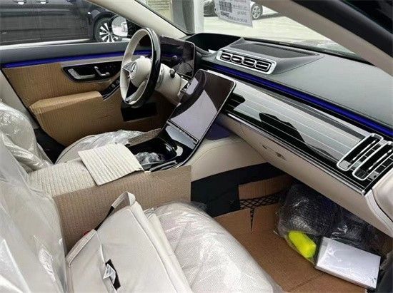 全新迈巴赫S580的内饰走的是科技路线,新车采用了三幅式的全新造型的方向盘,新车的中控台上采用了钢琴烤漆面板装饰,上面采用了多条横向的白色装饰条点缀。全新迈巴赫S 580采用了悬浮式的纵置大屏,液晶仪表采用了悬浮式的风格。