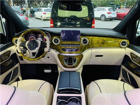 奔驰圣母峰虽然是由奔驰V260L定制升级的七座商务车但内部的变化可谓是翻天覆地,奔驰圣母峰驾驶舱仪表台被一整块的枫木饰板所替换,仪表台上方及主副驾驶座椅均进行了重新的真皮包裹。