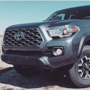 22款丰田塔库玛大面积的六边形蜂窝状中网,搭配角度垂直的车头设计,让车辆显得十分霸气。此外,新车还推出了TRD Pro版可选,而该版本在车身细节处会进行调整,譬如中网采用了枪灰色涂装,而专属的TRD标识能表明身份。