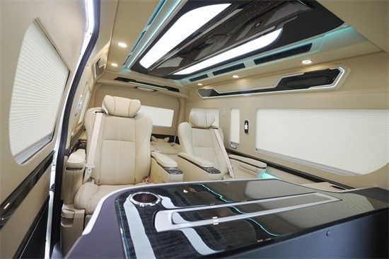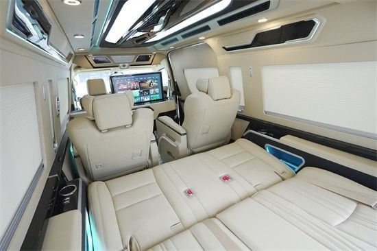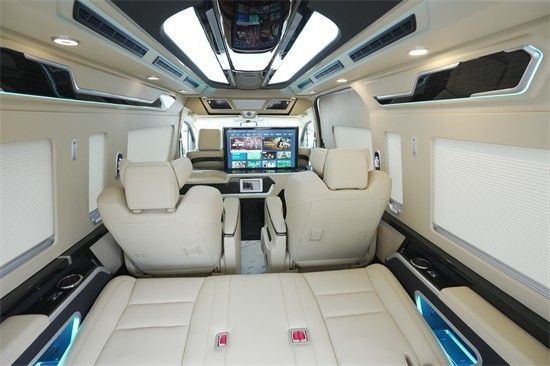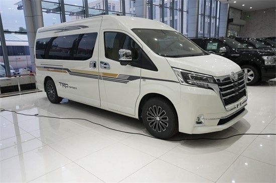 乘客区中间有走海狮车配备的DVD语言电子导航系统、车身颜色停车辅助感应器离子空气滤清器、全方位雷达以及冷藏保温箱也令人耳目一新。后排座椅可向上和左右两侧折叠更大的行李空间。HIACE车厢设计宽敞,中间走道将乘客座椅隔开。