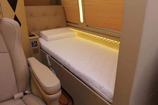 [丰田考斯特 (配置|询价)房车6座7座8座9座华通丰业-单人床-独立卫生间 洗手池]丰田考斯特房车可采用豪华的单人真皮座椅,宽敞舒适,360度可旋转的航空首长席更是在一定程度上方便了我们旅行商务办公或者娱乐的需要 。华通丰业汽车原装进口的埃尔法 (配置|询价)座椅,华通丰业汽车增加通风散热以及电动脚托等设计,为我们提供更加舒适温馨的乘驾环境。