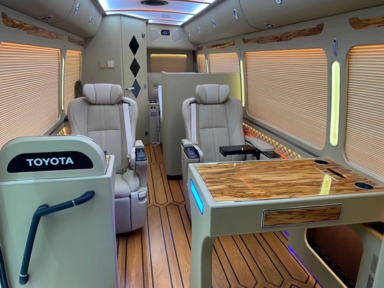 (丰田考斯特6座7座8座9座价格) 华通丰业汽车丰田考斯特房车豪华版卫星电视和太阳能板,燃油加热器热水供应系统和冰箱彩电微波炉冲水马桶等丰田考斯特房车的舒适度与豪华感,要知道丰田考斯特裸车的底盘动力及车身电泳防锈处理工艺,都是实实在在的品质保证。华通丰业汽车丰田考斯特房车水路系统方面车辆的净水箱和污水箱分别为90L和45L。华通丰业汽车电路系统方面最大的亮点在于采用了业内领先的趣蜂48V电路系统,配备有新能源汽车标准的高端48V锂电系统和趣蜂专用的房车充电系统。