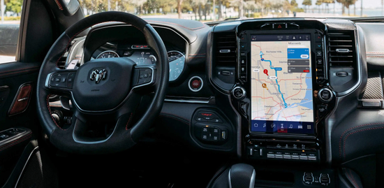 新车在内饰部分进一步强化了其高性能版本的形象,中控台和座椅随处可见的TRX标识便是最好的例证。)同时,作为道奇家族的旗舰车型,新车还配备了12英寸竖置中控屏幕,除了支持蓝牙、导航和车载Wi-Fi等常见功能,还支持Apple CarPlay和Android Auto手机映射。