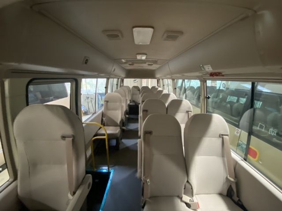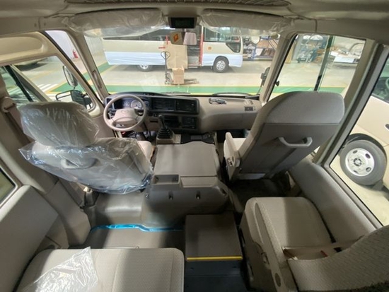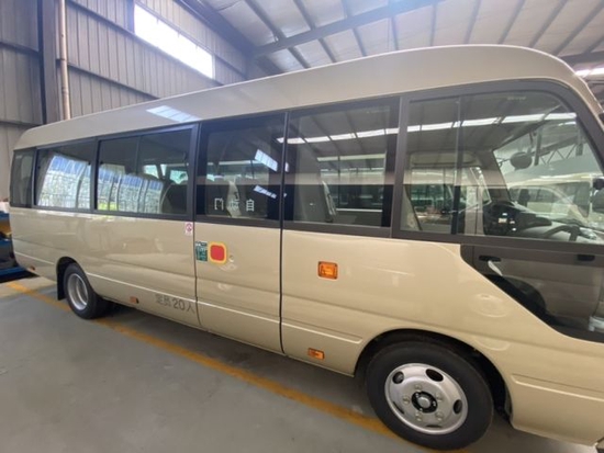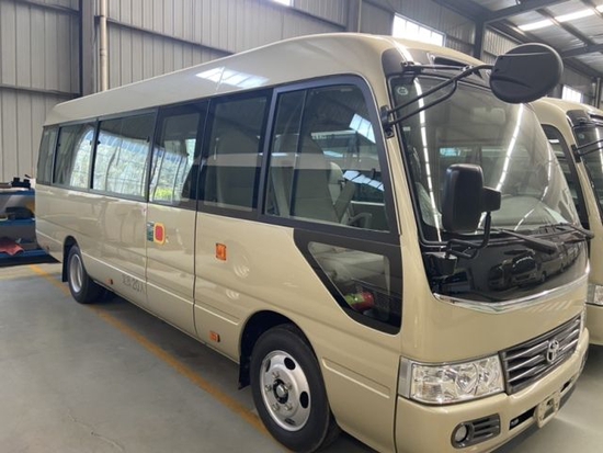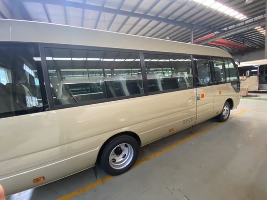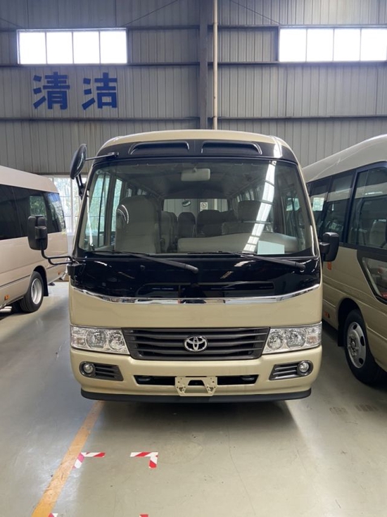 首先从丰田考斯特的车身外形上来说,为满足高端客户针对公务、商务活动以及办公需求而专门设定。首先我们看到的是车身端庄典雅的米黄金色,金属漆的设置,没有纯金色的刺眼,在端庄之中不失柔和之感。镀铬防蹭之上平行增加彩色腰线,色彩的搭配尽显贵族风范。在车轮处增加装饰轮罩,既能保护车轮确保行驶安全又可以增加车的美观,更显高贵之态。