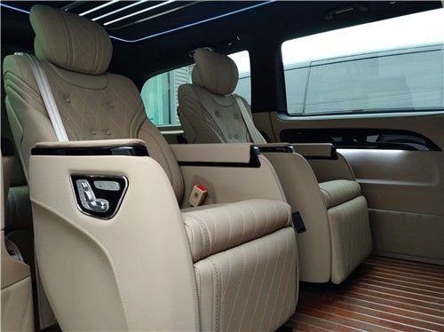 二排座椅调节系统,按摩功能在很多高级豪华车中都具备,而它也不例外地配备了按摩椅功能。按压位置、力度都有多种选择,给予你最合适的按摩模式,十分实用。还有加热、通风。 二排座椅可旋转与后排座椅面对面形成卡座,在二排座椅与三排座椅中间可以安装一个桌板,形成一个临时会客厅。