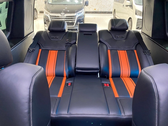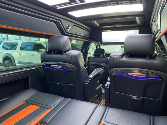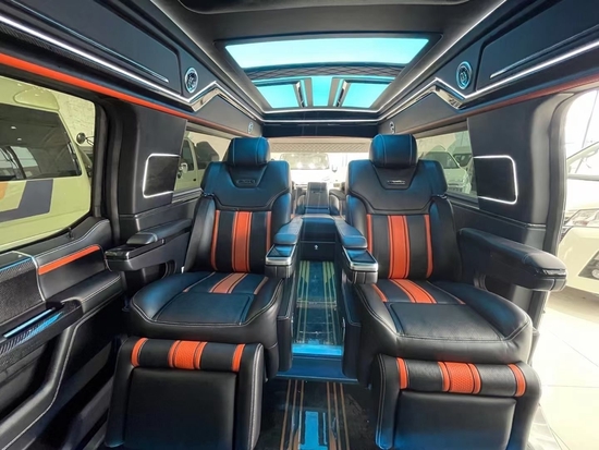 主要配置:上坡辅助、陡坡缓降、车道偏离、车道保持、变线辅助、自动泊车、全车雷达、全车环影、座椅加热、座椅通风、座椅按摩、座椅记忆、座椅十种模式调节、航空座椅、电动沙发床、柚木地板、气氛灯、电动踏板、双疝气大灯自适应、日间行车灯、220V电源、无钥匙进入、远程遥控启动、隐私玻璃、电动尾门、全景天窗、全车隔音、20寸轮毂米其林轮胎、防炫目后视镜、BO音响12喇叭、导航、大屏、蓝牙电话、拖车钩、电子驻车、10气囊、胎压显示、电动调节方向盘、刹车高低调节、自动恒温空调等等。