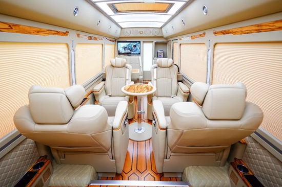 丰田考斯特华通丰业在内饰的其他的设备上,也充分体现了改装的独特之处。丰田考斯特改装商务车内饰的灯光,地毯,窗帘,办公桌华通丰业车载冰箱,雨伞柜,酒柜,隔断,迎宾标志,车内驾驶席的半桃木装饰既能够提高丰田考斯特改装商务车内饰的美观,也为人们在乘车过程中提供了华通丰业更加舒适和实用的办公环境。