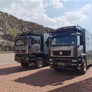重汽汕斯特改装越野房车拥有越野宗师级的超级底盘,在其之上配备了一个多功能扩展组件,该组件用来在底盘上安装各种车身。正因为此,重汽汕斯特改装越野房车才能够成为百变金刚:可以变成旅行房车、货车、消防车、军用运输车等。当然了,所有重汽汕斯特改装越野房车的门式车桥都配备后差速锁,后轮驱动……接500mm的离地间隙,让它足以面对所有极限路况,其零部件及电气元件有防水保护、再配合防水式前大灯,轮毂、制动器密封等让这辆猛兽无所不能!德国曼技术发动机是一款技术先进、性能卓越、多功能、全天候的特种越野车,重汽汕斯特改装越野房车也是世界上能在沙漠、山区等各种极限路况下凸显自身优良特性的房车。无论是翻山越岭、穿林下河、征战沙漠,还是防弹运兵、战地救护,都是超一流的越野之王。