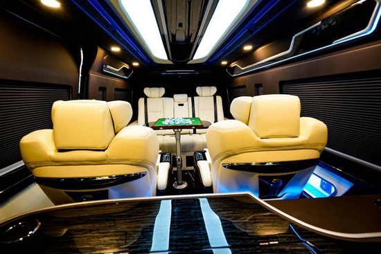 里面的座位布局虽然是9个座位,但看起来并不拥挤。车厢设计宽敞,乘客区中间有一条过道将两个座位分开。椅子方便骑乘和进出。