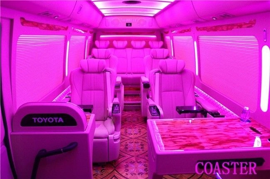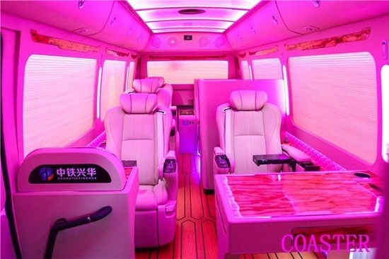 丰田考斯特 (配置|询价)11座商务车可采用豪华的单人真皮座椅,宽敞舒适,360度可旋转的航空首长席更是在一定程度上方便了我们旅行商务办公或者娱乐的需要。原装进口的埃尔法 (配置|询价)座椅,增加通风散热以及电动脚托等设计,为我们提供更加舒适温馨的乘驾环境。咨询热线在文章最下方丰田考斯特改装商务车在的灯光的设计上更是能突出丰田考斯特改装的别出心裁之处。