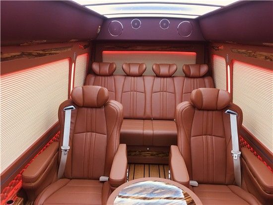丰田考斯特改装商务车在内饰的设计上充分的展示了人们对与舒适的定义。内饰的座椅上我们有多种选择,每种选择都可以给我们带来不同的体验。真皮座椅、航空座椅、原装埃尔法 (配置|询价)座椅等,豪华的座椅搭配高档次的办公桌以及双人汇报席可以让我们随时随地办公。内饰隔断的设计更是为车内的空间提供了保障,隔断氛围高级升降隔断、固定隔断、电动隔断、电视隔断,每种隔断都有不同的作用,正是这些独一无二的设计成就了丰田考斯特改装商务车的独特舒适。