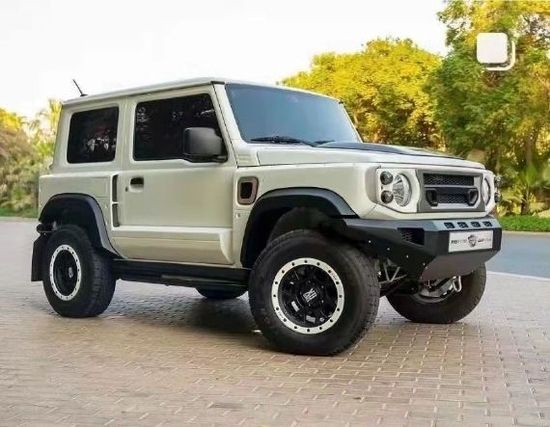 铃木吉姆尼依然采用三门式设计,车身整体短小紧凑。在侧面,一条与大地平行的腰线贯穿前后,看上去十分硬朗。至于车尾,新车的设计感相比现款车型更弱,不过尾灯组由尾门两侧全部移动到了后保险杠两侧。这仿佛是在向初代或第二代吉姆尼致敬。